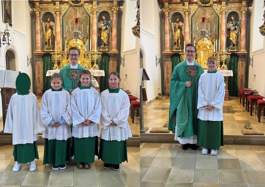 Wir freuen uns auch sehr über die 4 neuen Ministranten in der Pfarrei St. Nikolaus. Im Gottesdienst stellten sie ihre Arbeitsgeräte vor, wurden dann angekleidet und machten sich so gleich an die Arbeit. Schön, dass ihr jetzt auch mit dabei seid!!